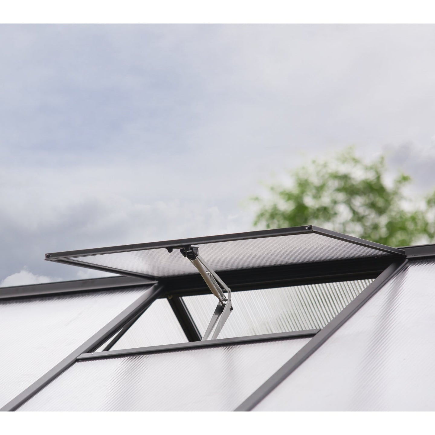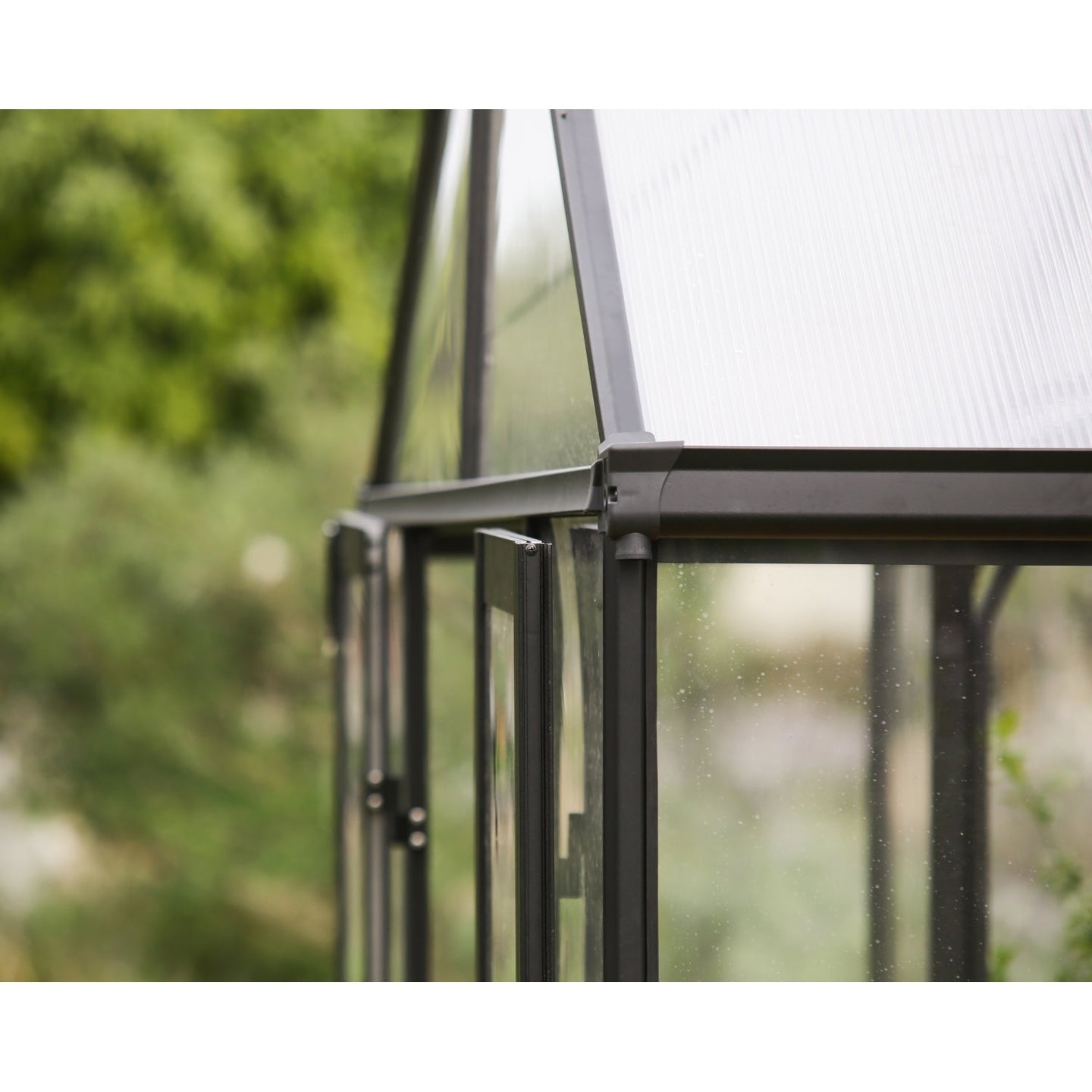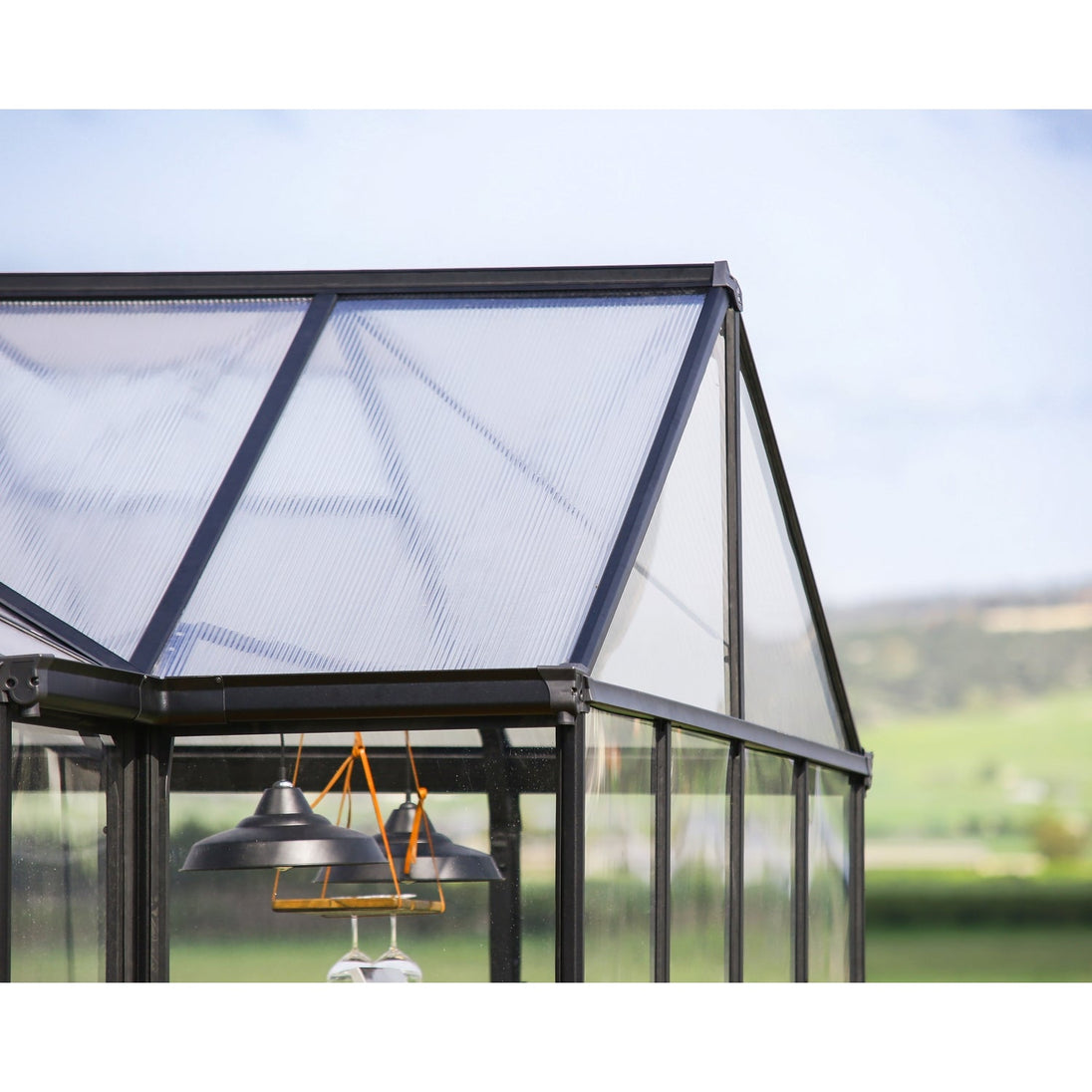 - Resilient Polycarbonate Panels: 10 mm multi-wall roof panels protect from strong sunlight exposure and extend your season by protecting plants from fall frosts.