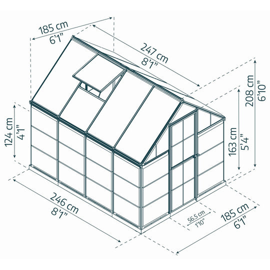 Palram - Canopia | 6x4 Ft Hybrid Greenhouse Kit - Green With 0.8mm Polycarbonate Glazing