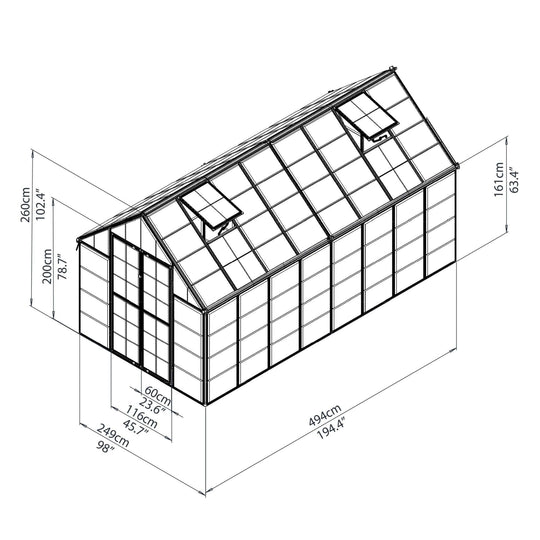 Palram - Canopia | Grand Gardener Greenhouse Kit - 8 Ft Wide - Green - 0.8mm Clear Polycarbonate Glazing