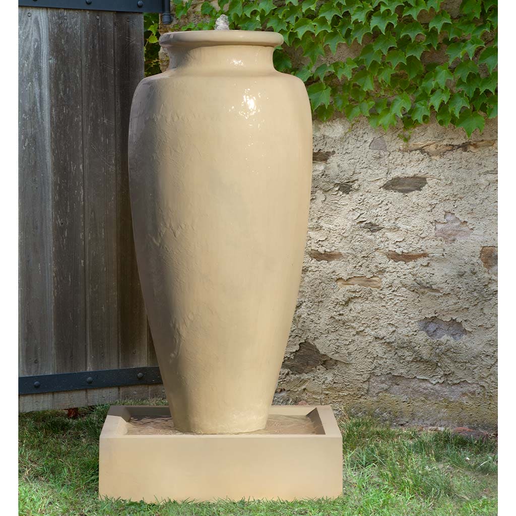 Skilled artisans in the USA handcraft the Bilbao Fountain. The Campania team applies a unique patina, making each piece one-of-a-kind. This fountain is shown in the Aged Limestone color. Due to materials, manufacturing processes, and variations in photography conditions, natural differences can occur in size, weight, and color. The actual color may vary from the photo.