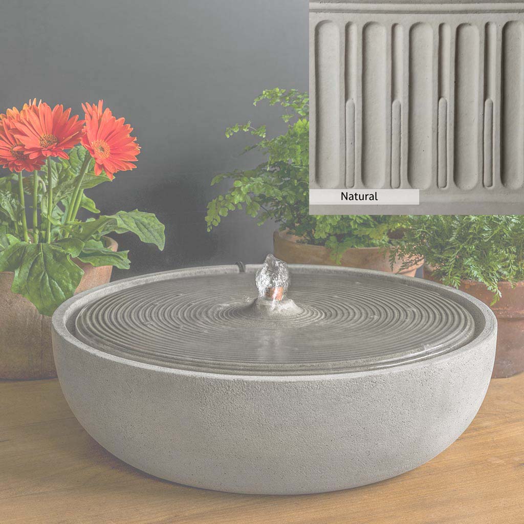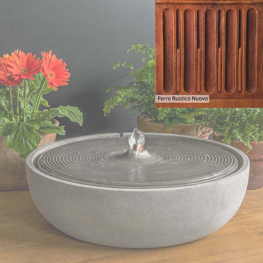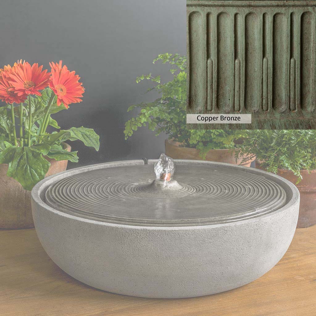 The Campania team skillfully handcrafts each piece of the Ripple Large Fountain in the USA, giving it a unique patina for a one-of-a-kind look. This fountain, shown in the Alpine Stone color, adds a beautiful sound of cascading water to the garden and promotes relaxation and calmness for both people and wildlife. Additionally, it serves as a cooling destination for birds and other creatures, deepening their engagement with nature.
