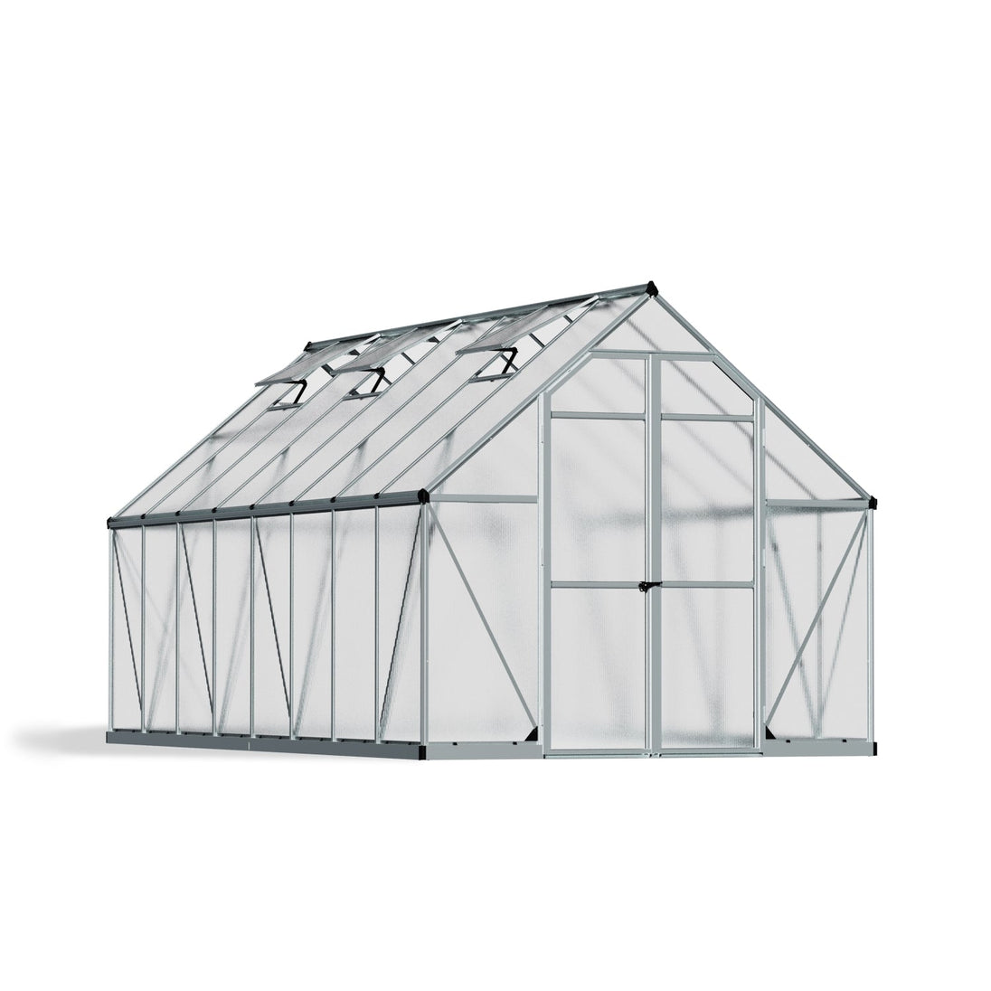 Upgrade your happy place with the spacious Canopia Essence Greenhouse. This beautiful and practical greenhouse kit features high headroom for moving around comfortably and enough working space to store your tools and plant your garden favorites.