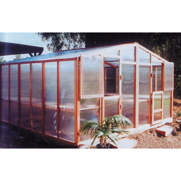Santa Barbara | Redwood Lean-To Greenhouse/Sunroom Frame, Polycarbonate Roof Glazing, No Wall Glazing