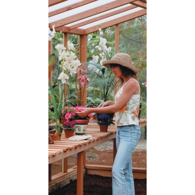 Santa Barbara | 6ft or 9ft Wide Deluxe Redwood Lean-To Glass Greenhouse/Sunroom Premium Package, 3/16 in Glass Glazing, Pre-assembled Panels