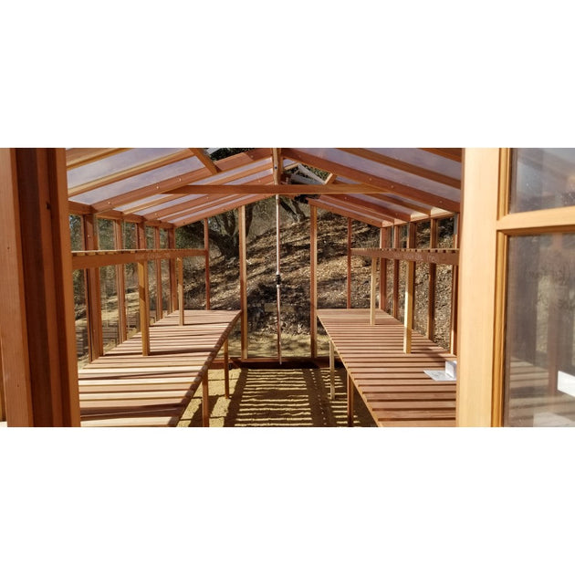Santa Barbara | Deluxe Redwood Glass Greenhouse/Sunroom Premium Package With 3/16 inch Glass Glazing and Pre-assembled Panels